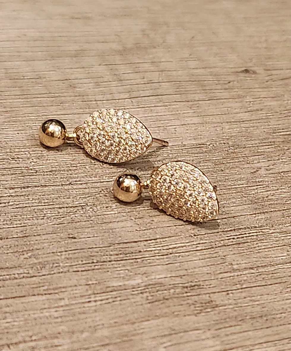 Brinco “casco tartaruga”, zircônias e esfera, banho ouro